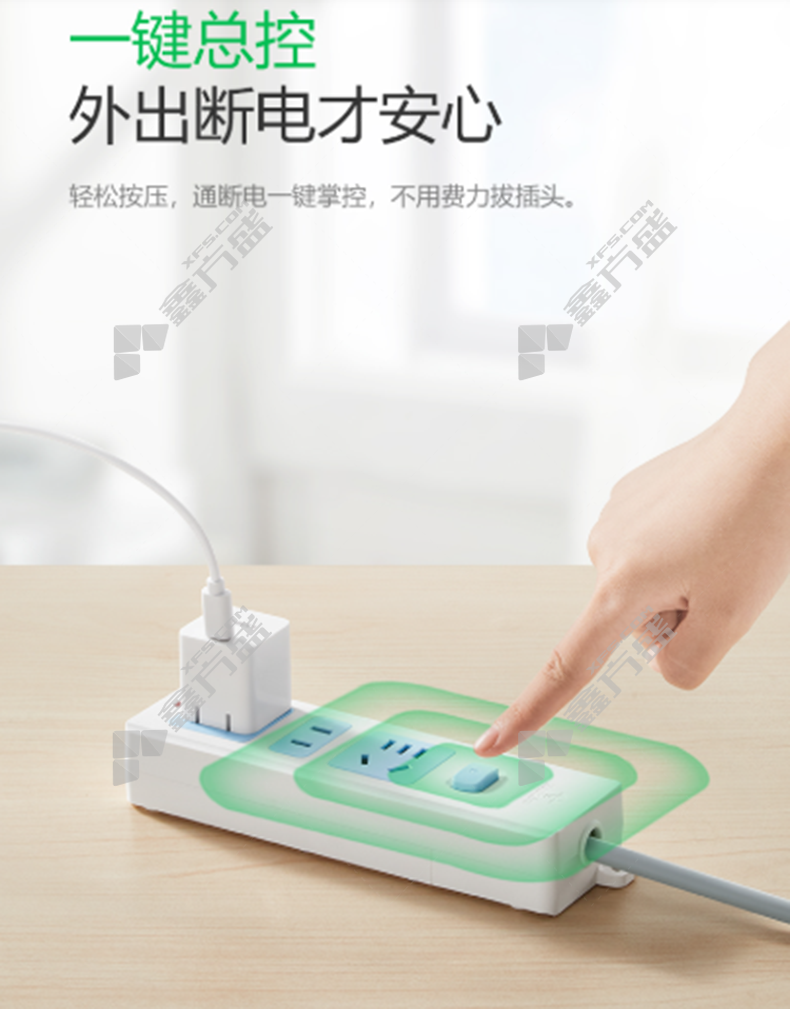 良工 T系列 2位(1+1)总控 插排 XD-T111 10A 有线 2.8m