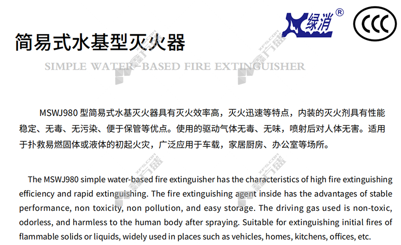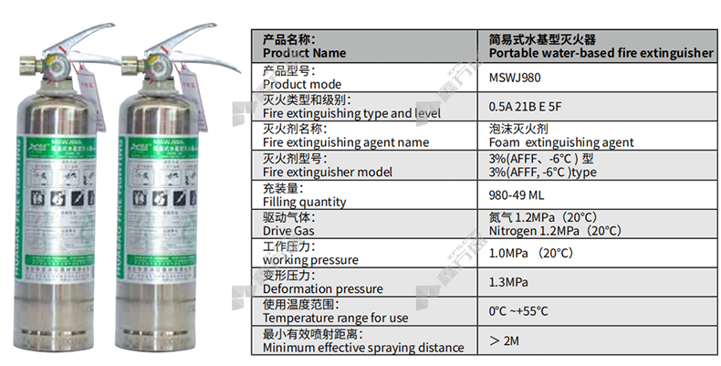 商品名称: 绿消 简易式不锈钢水系水基灭火器 MSWJ980ml 1kg