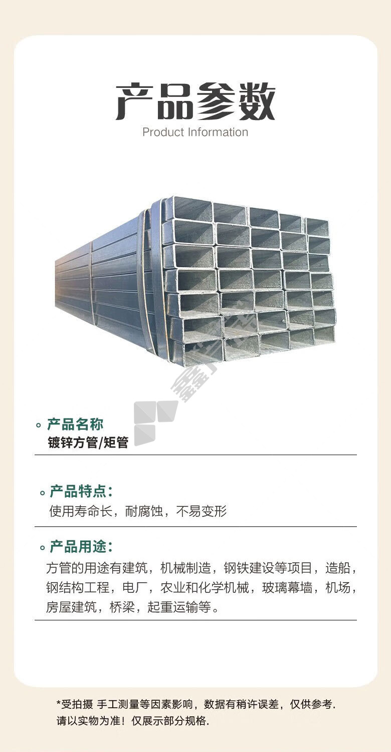 商品名称: 盾石 镀锌方管 40*40*1.5mm/6m