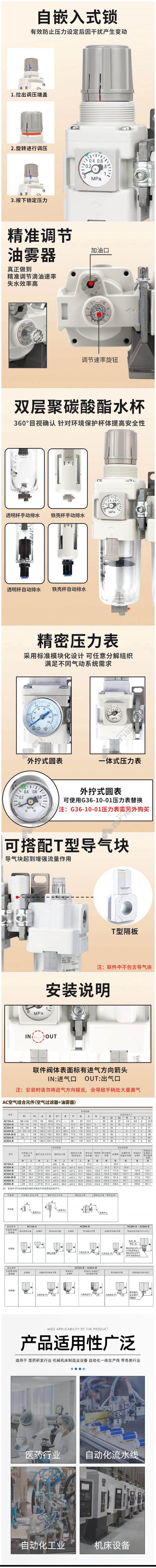 首页 首页 > 星浙气动 AC系列 自嵌入式锁 AC-A-A二联件 AC30A-02DG-A 2分 5μm 自动排水
