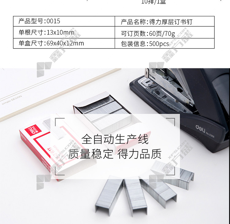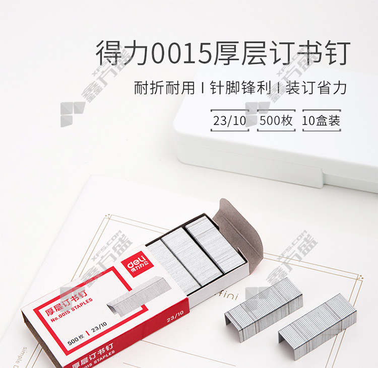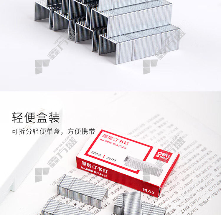 商品名称: 得力 0015 订书钉 23/10 60页 500枚*10盒