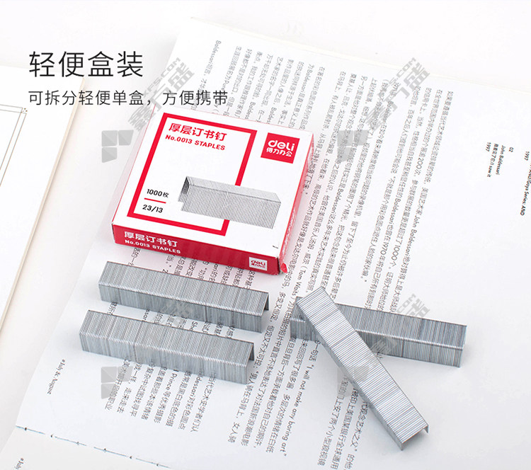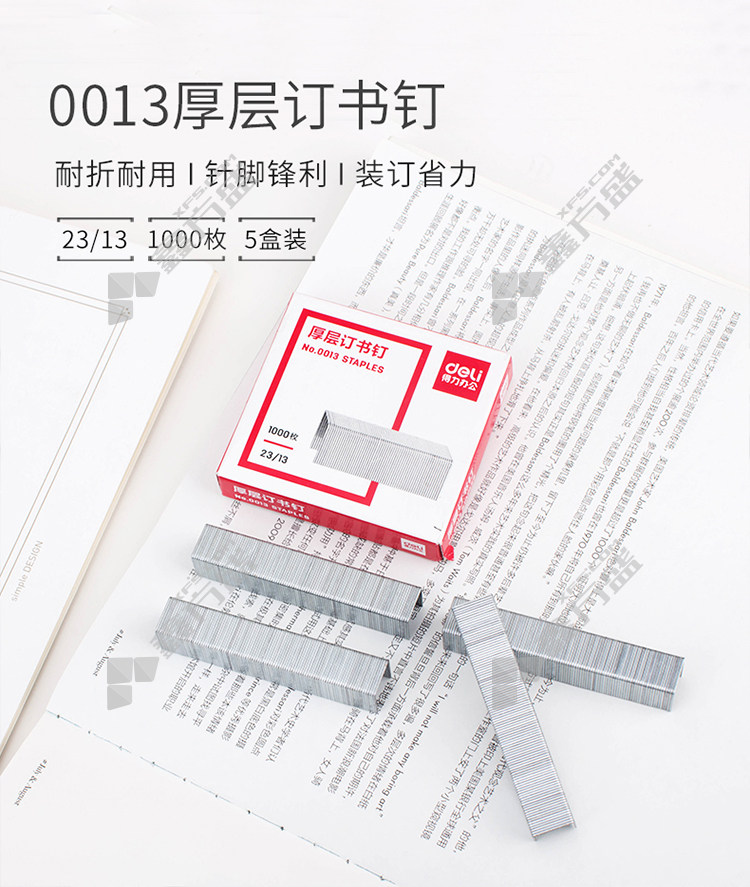 商品名称: 得力 0013 重型厚层订书钉 23/13 100页 1000枚*5盒