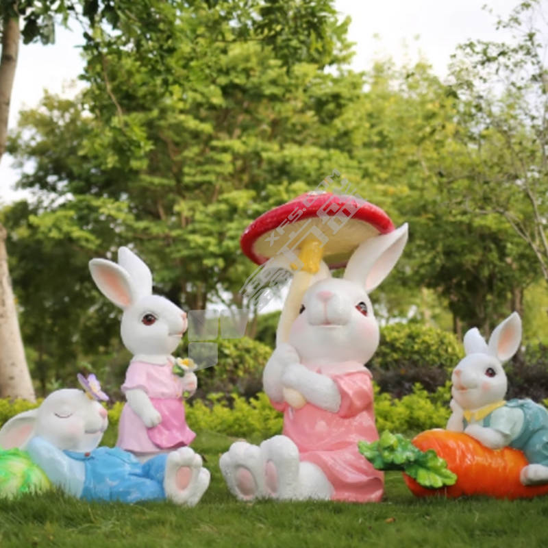 商品名称: 国产优品 白色花园兔整套雕塑 拿花的兔妹妹长30*宽29*高81cm睡觉的兔哥哥长68*宽43*高39cm调皮的兔弟弟长73*宽35*高60cm抱蘑菇的兔妈妈长79*宽54*高105cm