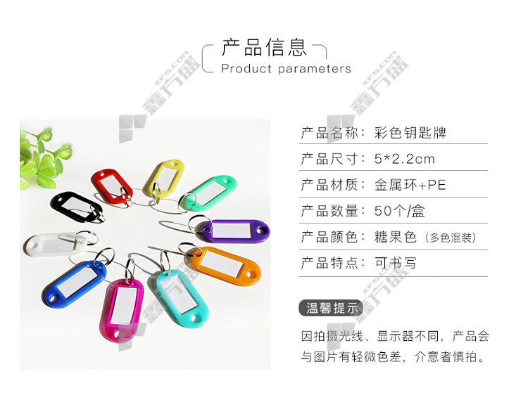 商品名称: 得印 9848 单面钥匙牌 2.2*5cm 彩色 50个/筒