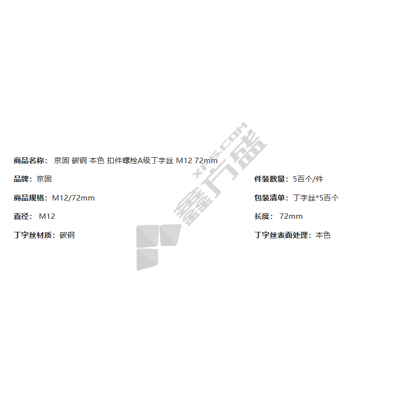 商品名称: 京固 碳钢 本色 扣件螺栓A级丁字丝 M12/72mm