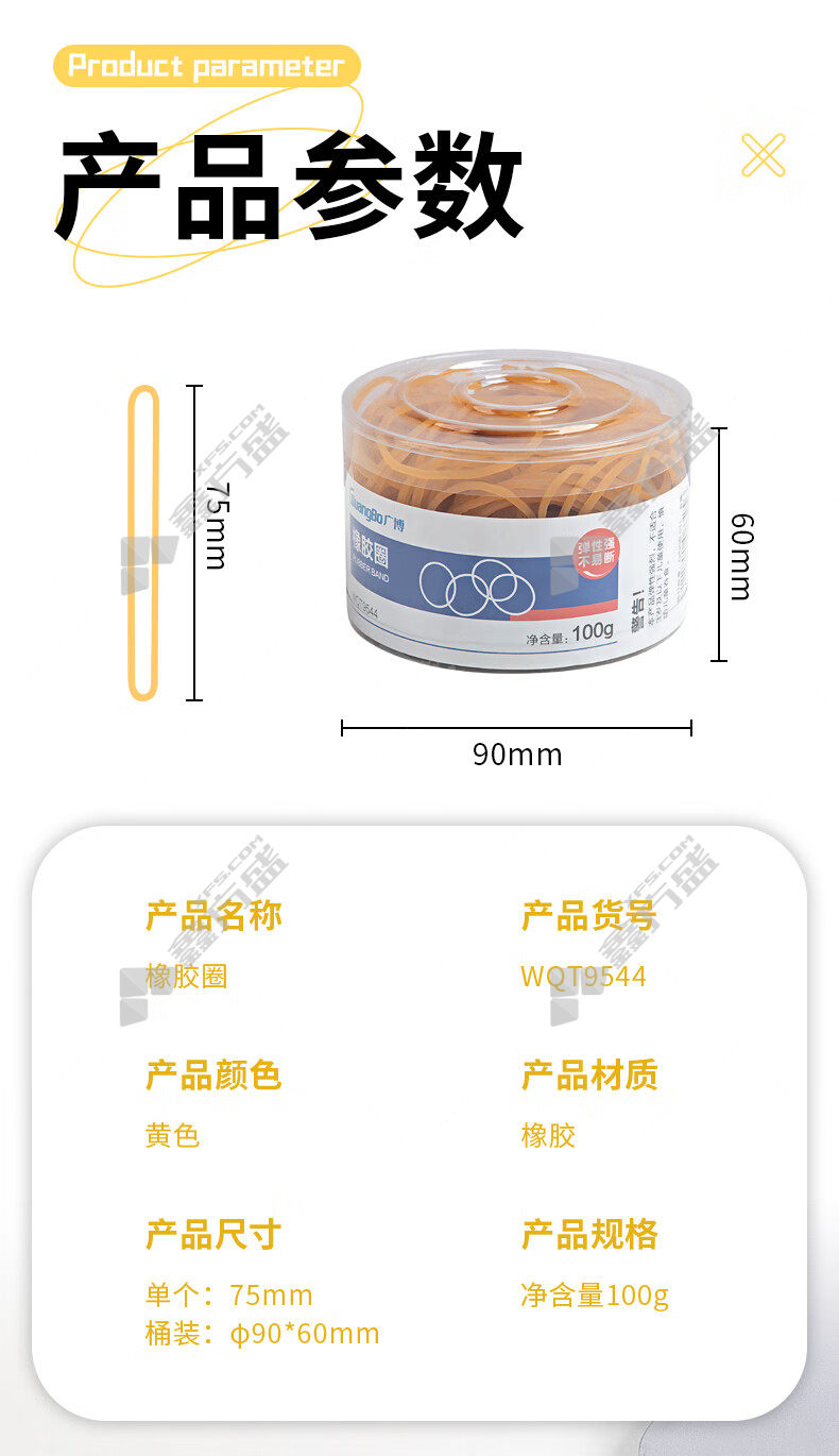 商品名称: 广博 WQT9544 橡胶圈 75mm 100g