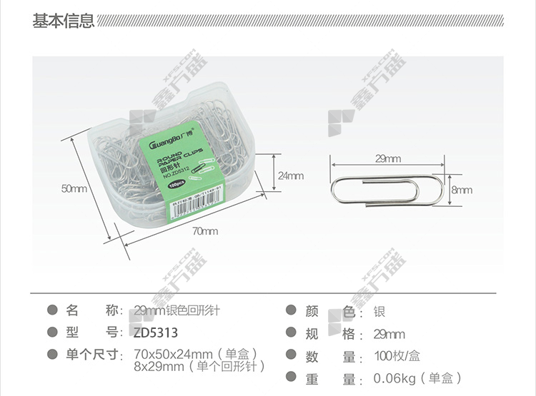 商品名称: 广博 ZD5313 回形针 29mm 彩色 100枚
