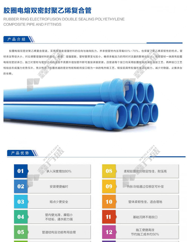 商品名称: 钦谊 胶圈电熔双密封聚乙烯复合管 250*6m 1.6MPa