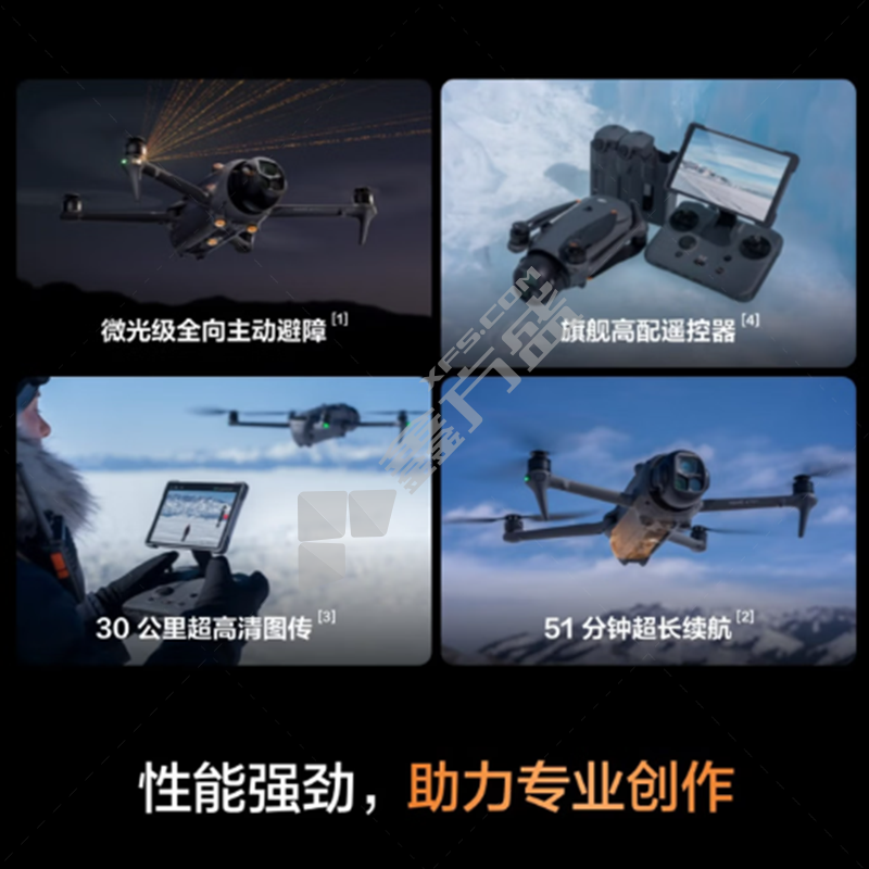 商品规格:DJl Mavic 4Pro畅飞套装随心换2年版/30km/51分钟/41km