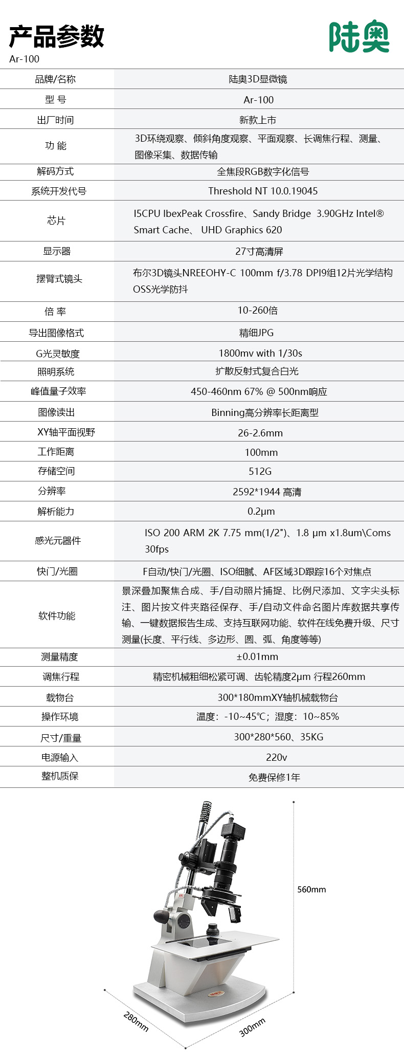 商品名称: 陆奥 Ar-100 高清3D显微镜 10-260倍