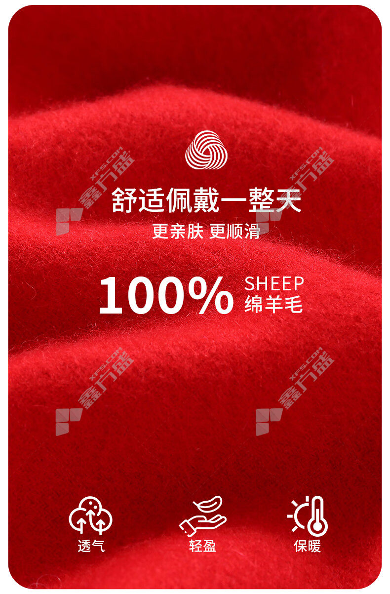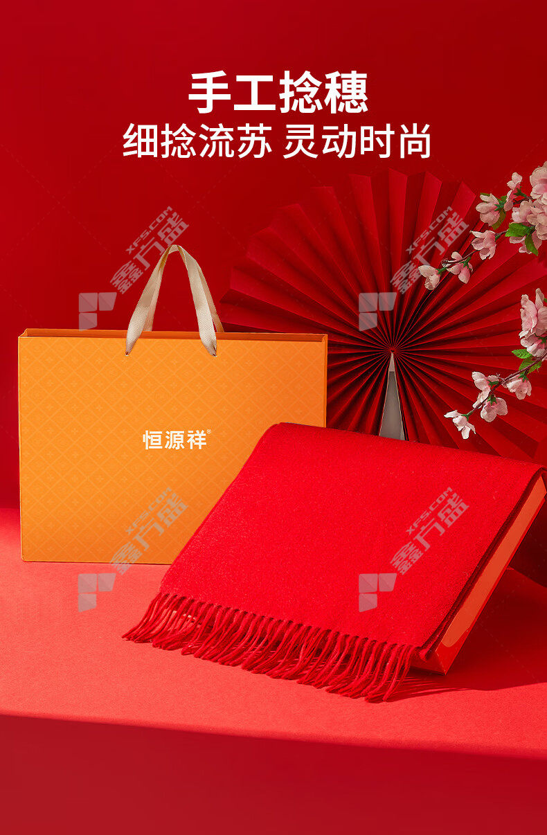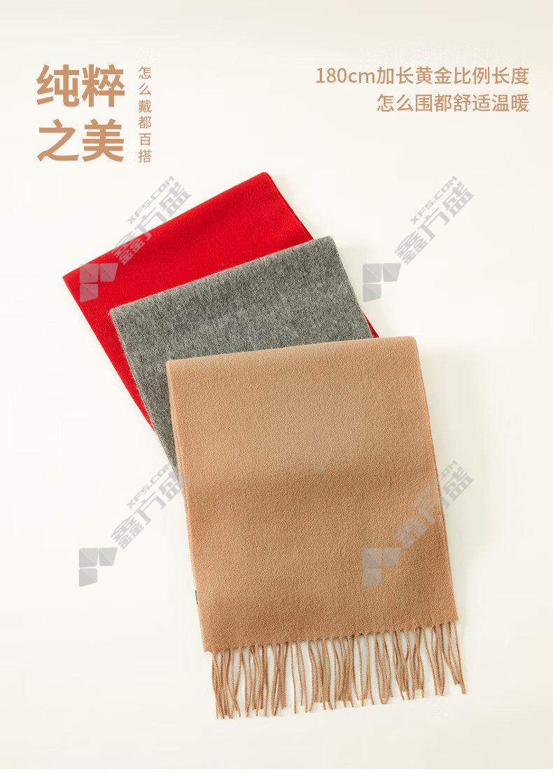 恒源祥 纯羊毛围巾 HYX045WJ 红棕格