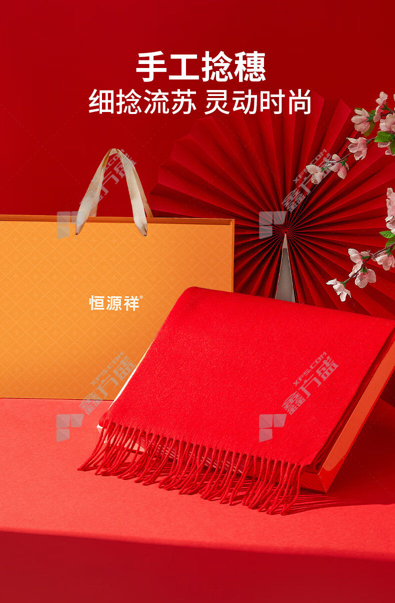 • 恒源祥 纯羊绒围巾 HYX048WJ 中国红