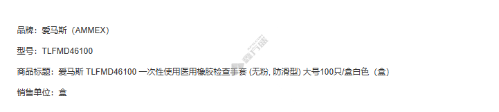 商品名称: 爱马斯 一次性手套 TLFMD46100