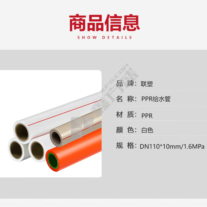 商品名称: 联塑 白色 PPR给水管 DN110*10mm/1.6MPa