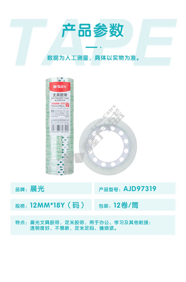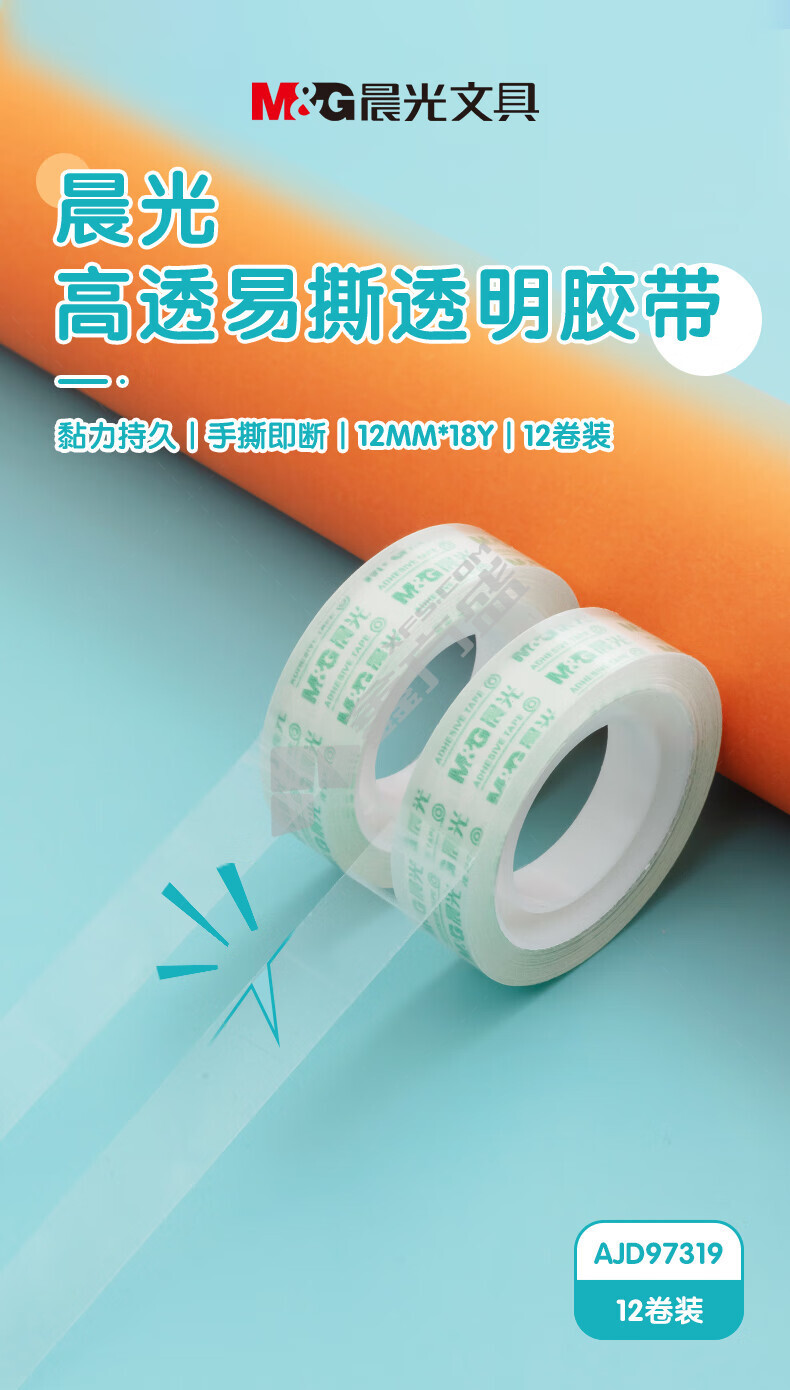 首页 首页 > 晨光 文具胶带. AJD97319 8mm*50y高透易撕便携45.7m/卷12卷装.
