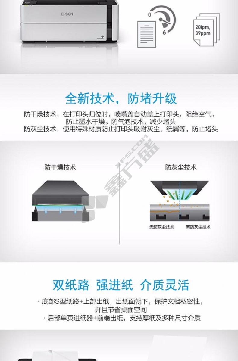 • 爱普生 喷墨打印机. M1178 A4幅面墨仓式黑白打印机打印速度:39页 分钟 经济模式 20页 分钟 标准模式.