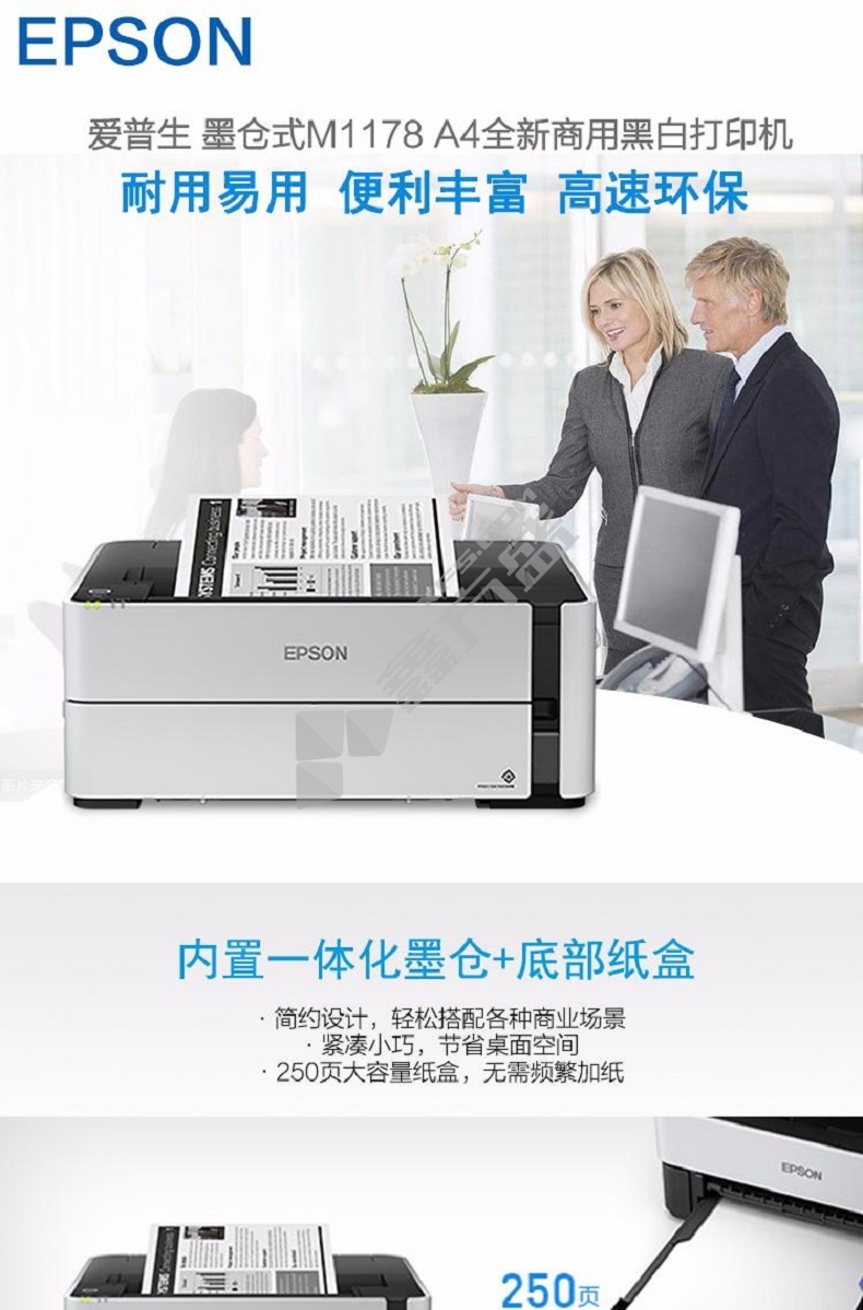 爱普生 喷墨打印机. M1178 A4幅面墨仓式黑白打印机打印速度:39页 分钟 经济模式 20页 分钟 标准模式.