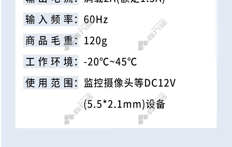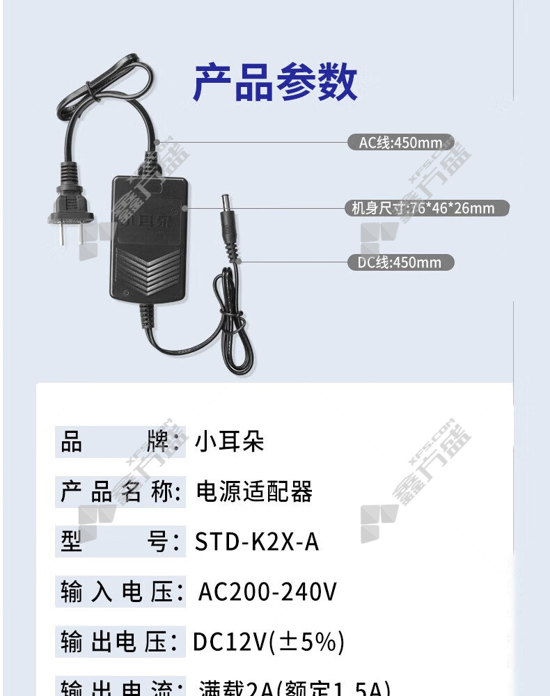 商品名称: 小耳朵 室内监控电源适配器 STD-K2X-A 12V 24 W 2A 76mm