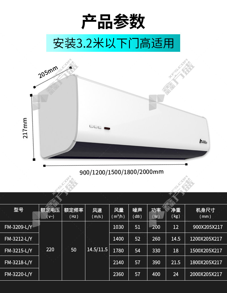 商品名称: 西奥多 S7系列 离心式风幕机 FM-3215-L/Y 220V 0.33KW 1780m³/h 1500*205*217mm