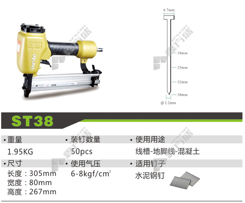 适用钉子长度: 38mm