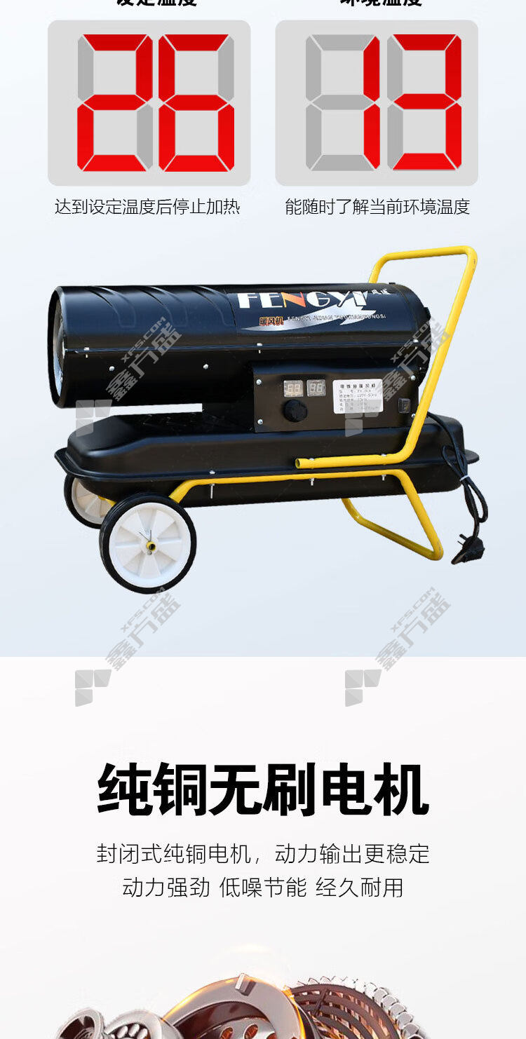 商品名称: 风逸 FY-50A 燃油暖风机 50kW 220V 350-450㎡