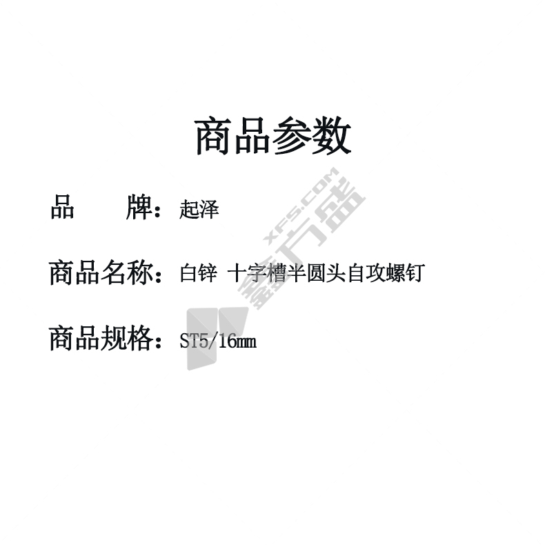 商品名称: 起泽 白锌 十字槽半圆头自攻螺钉 ST5/16mm