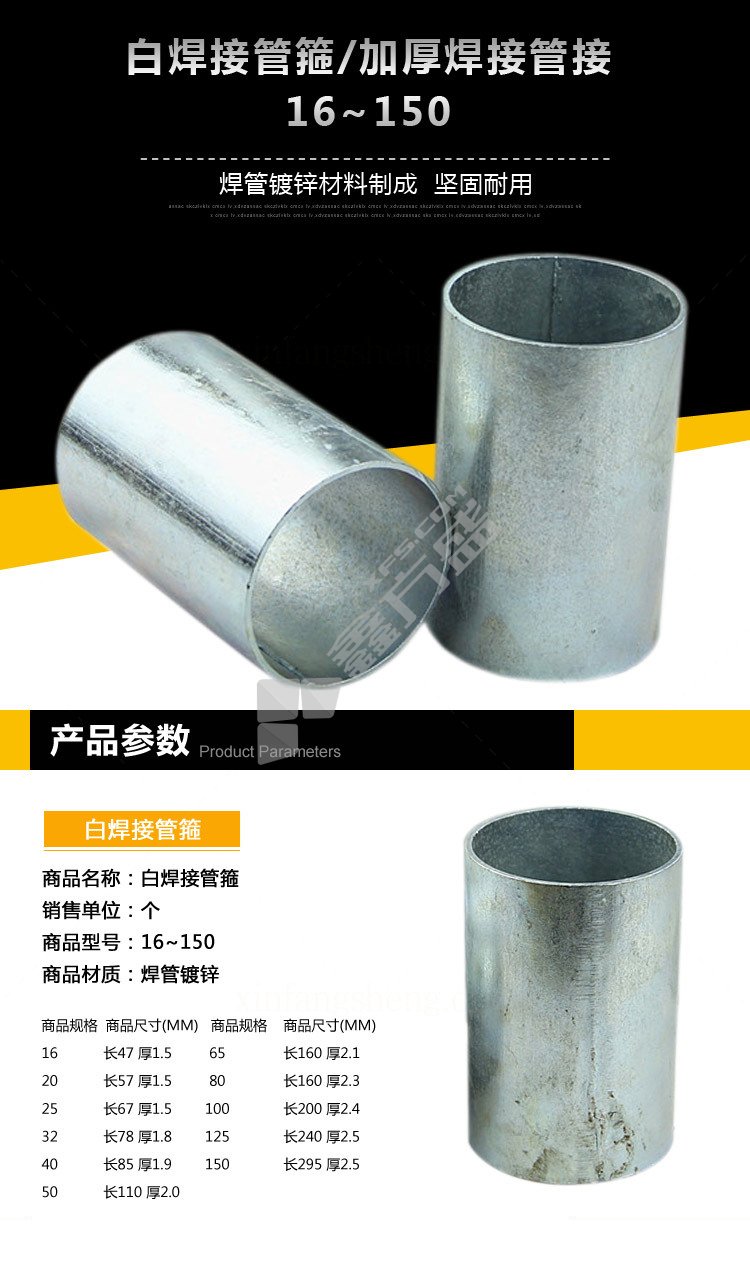 商品名称: 白焊接管箍 DN50*100mm