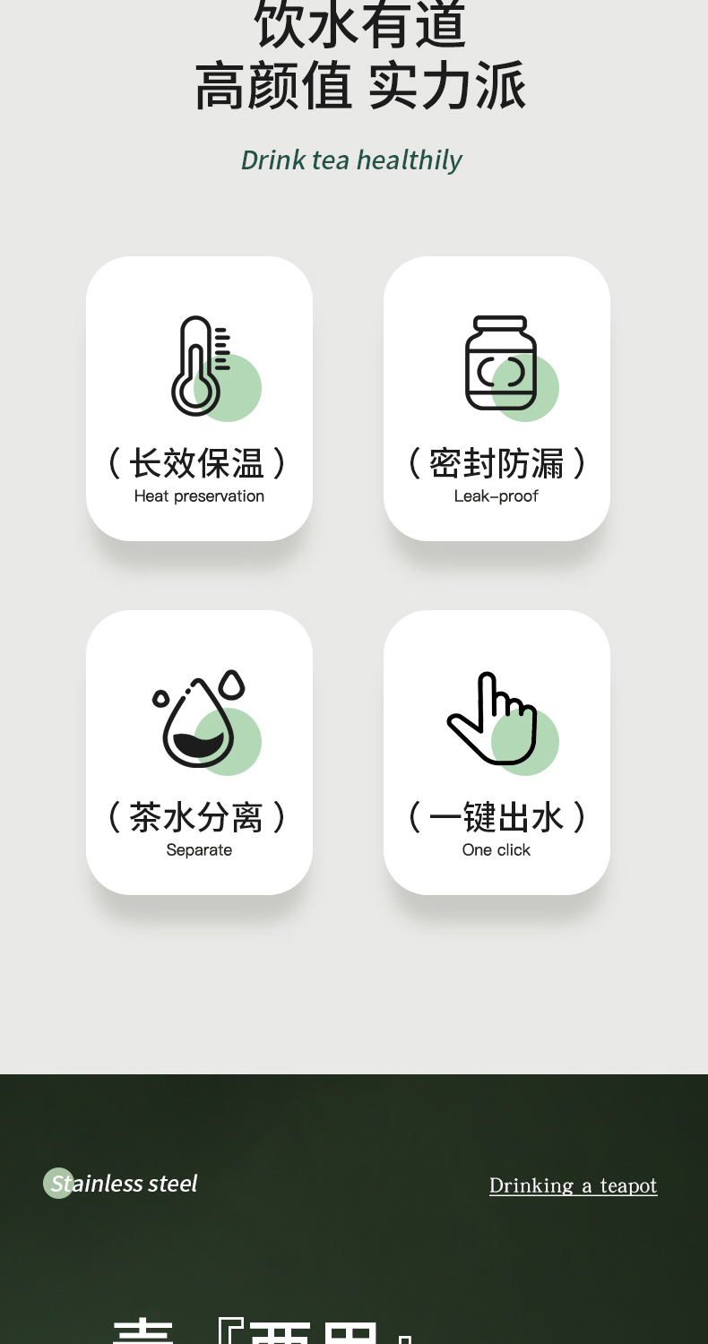 茶具壶/杯材质:内316+304不锈钢 外201不锈钢