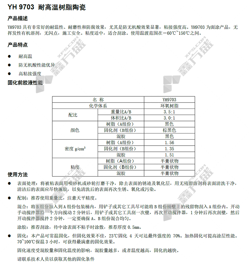商品名称: WONHENG YH9703 耐高温树脂陶瓷 10kg