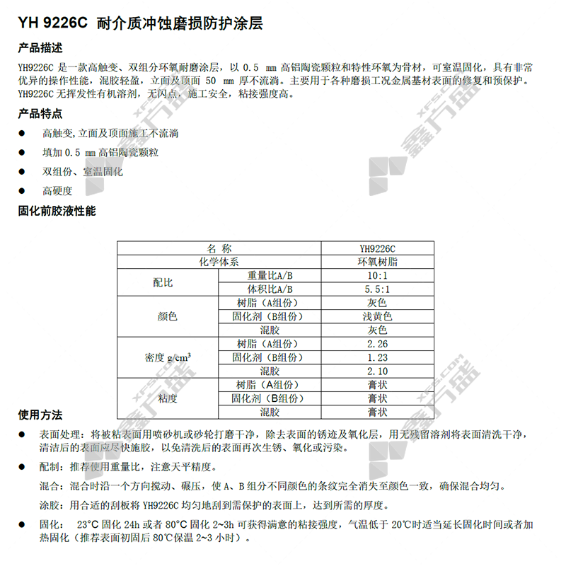 商品名称: WONHENG YH9226C 耐介质冲蚀磨损防护涂层 10kg