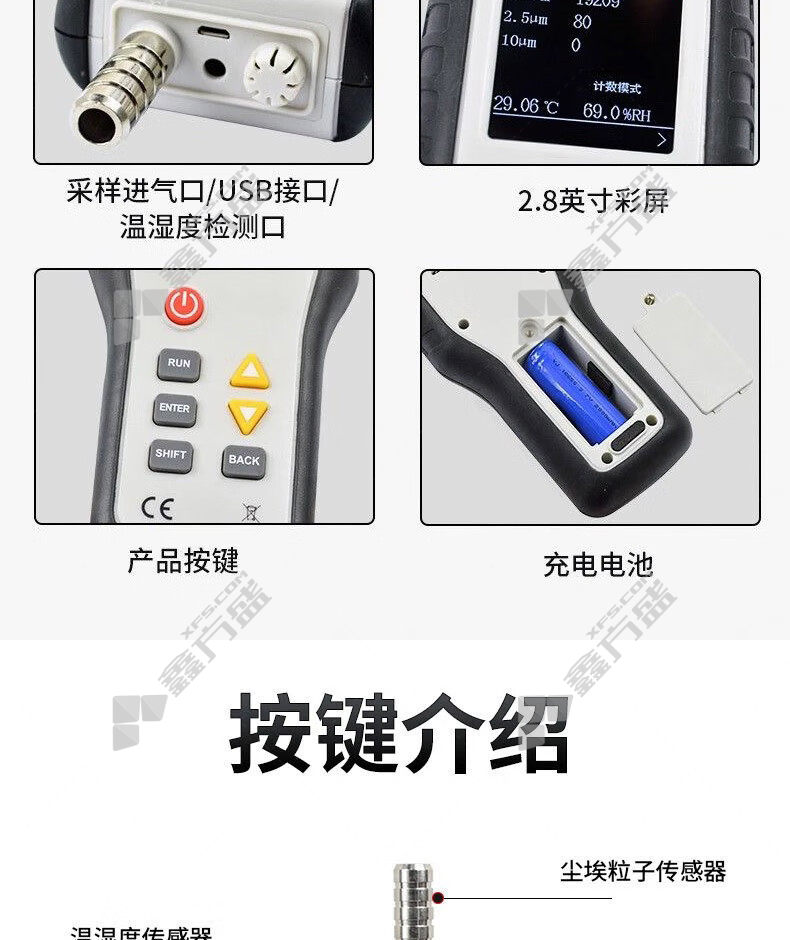 商品名称: 鑫思特 粉尘检测仪 HT-9600 3个通道