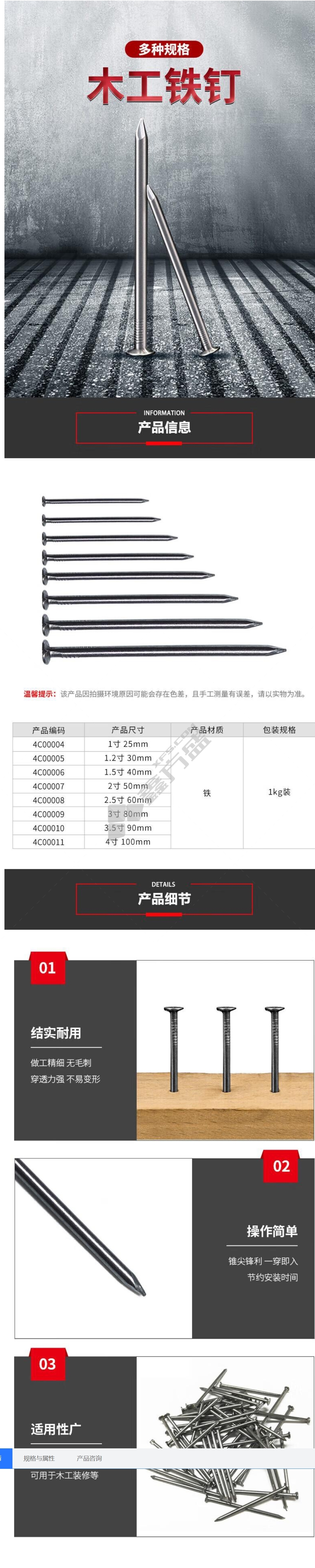 商品名称: 恩疆 铁钉. 4C00011 100mm 1kg/包