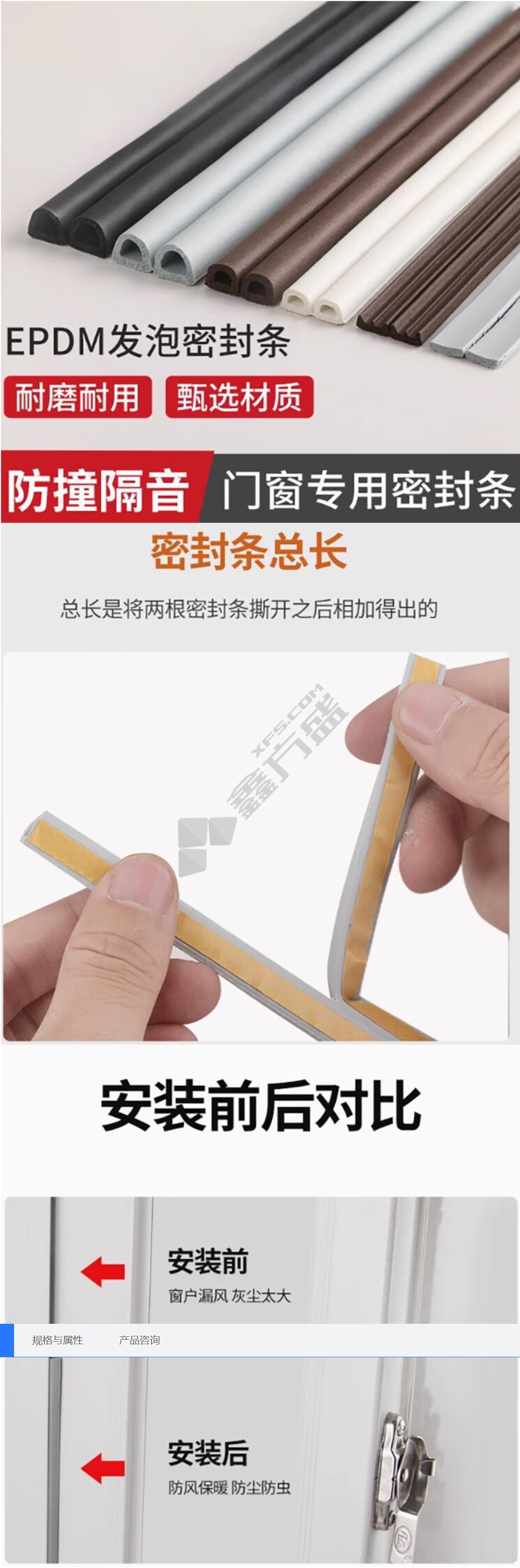 商品名称: 平环 窗户防风D型密封胶条. 9*6mm*6m 黑色 黑色