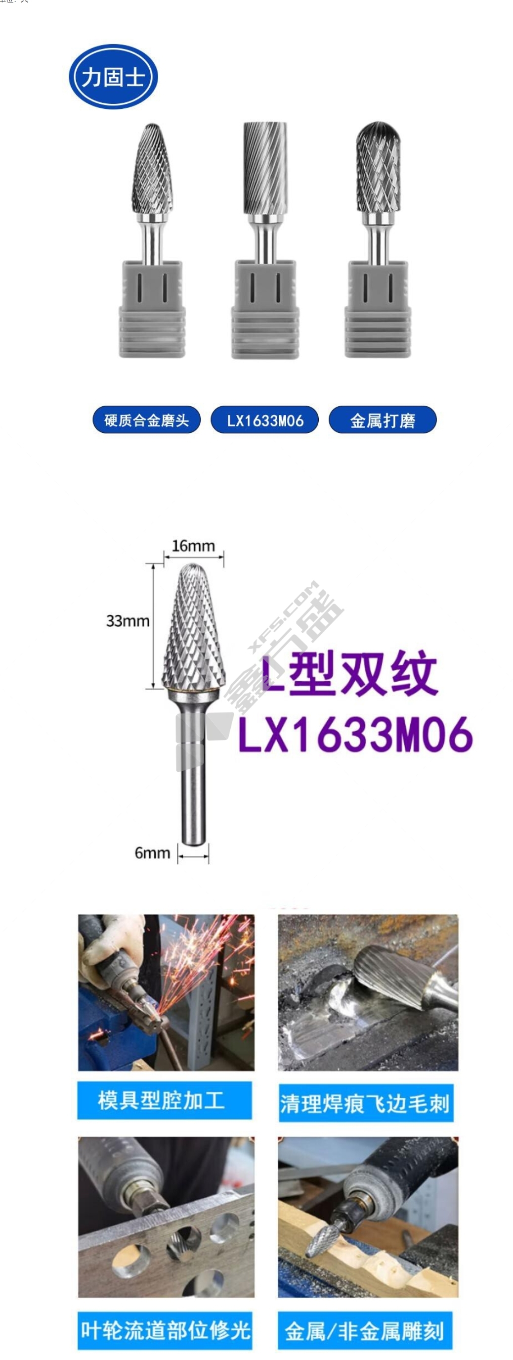 商品名称: 力固士 打磨钻头. LX1633M06 16*33*6mm .