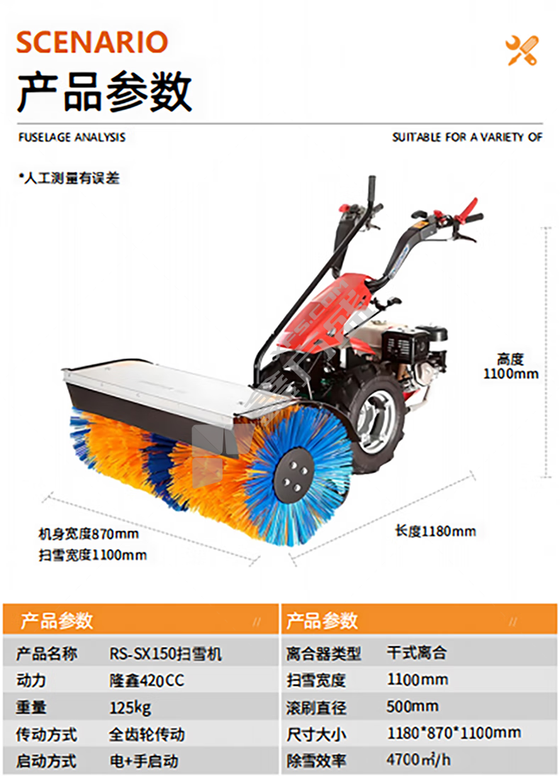 商品规格:RS-SX150+抛雪+推雪 汽油款 W:1100mm .