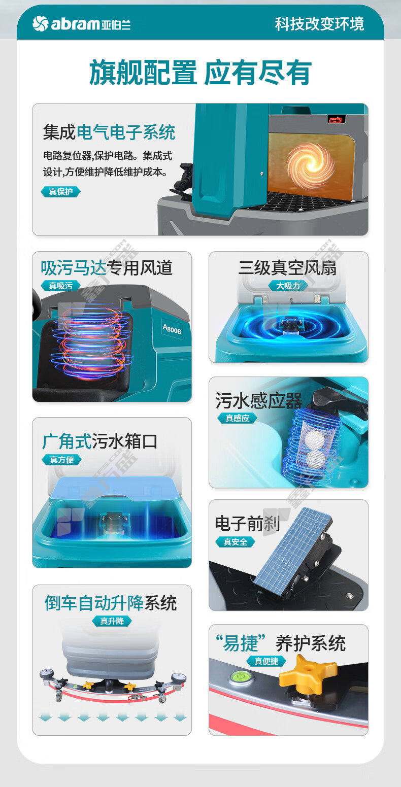亚伯兰 ABRAM A800Y 洗扫一体机 刷盘电机550W*2 吸水电机600W 810mm 145L 6200㎡/h