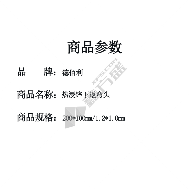 商品名称: 德佰利 热浸锌下返弯头 200*100mm/1.2*1.0mm