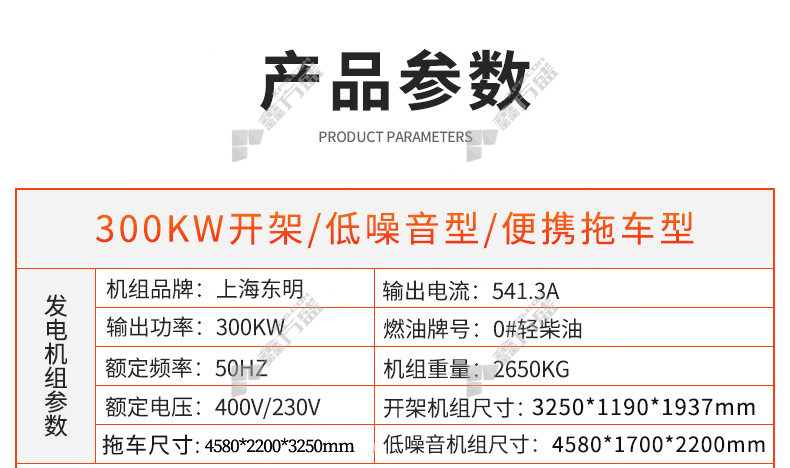 商品规格:GF2-300Y(T)-1/300kW/70L/电启动/单相/三相