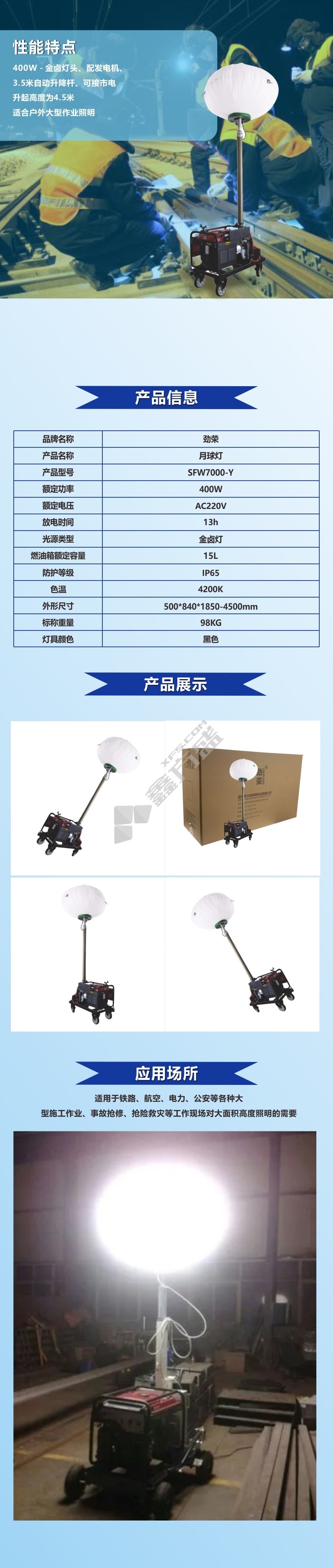 商品名称: 劲荣(JINRONG) 劲荣(JINRONG)SFW7000-Y 400W 月球灯(计价单位:台)黑色. SFW7000-Y 400W.