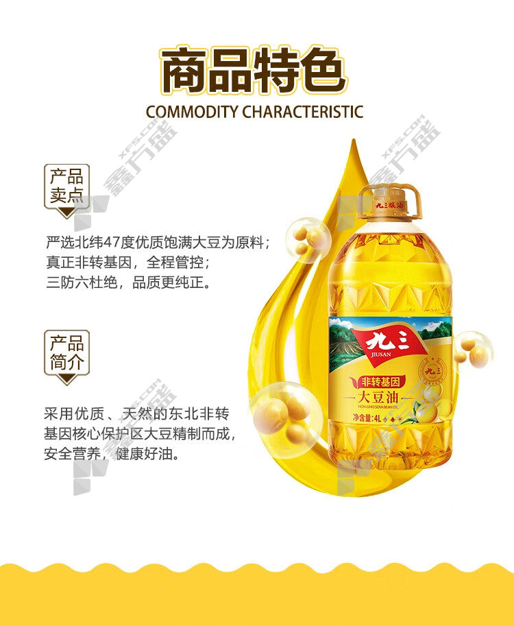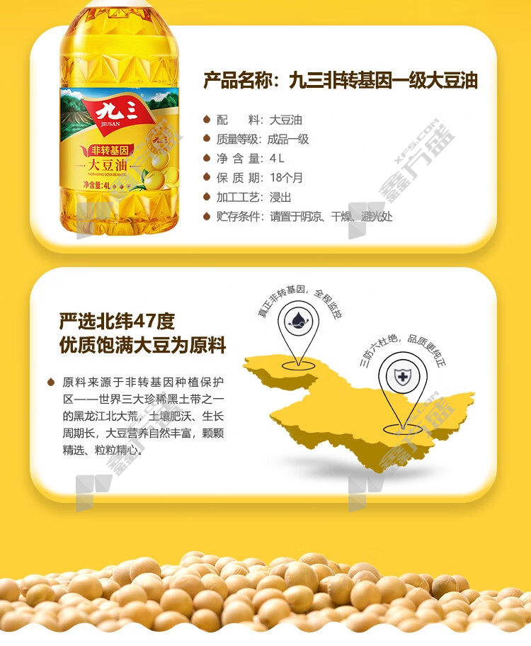 商品名称: 九三 非转基因 一级大豆油 4L