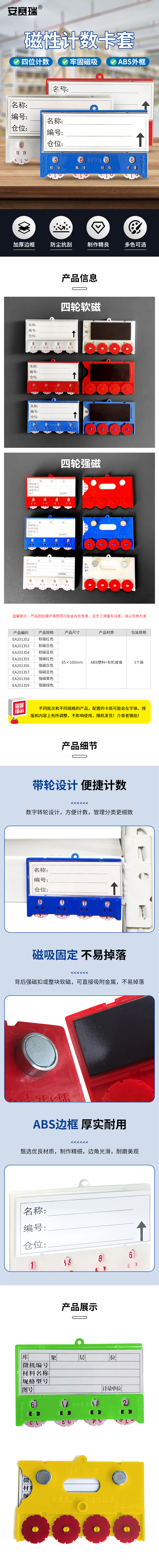 商品规格:55*75mm 3位计数 强磁蓝色