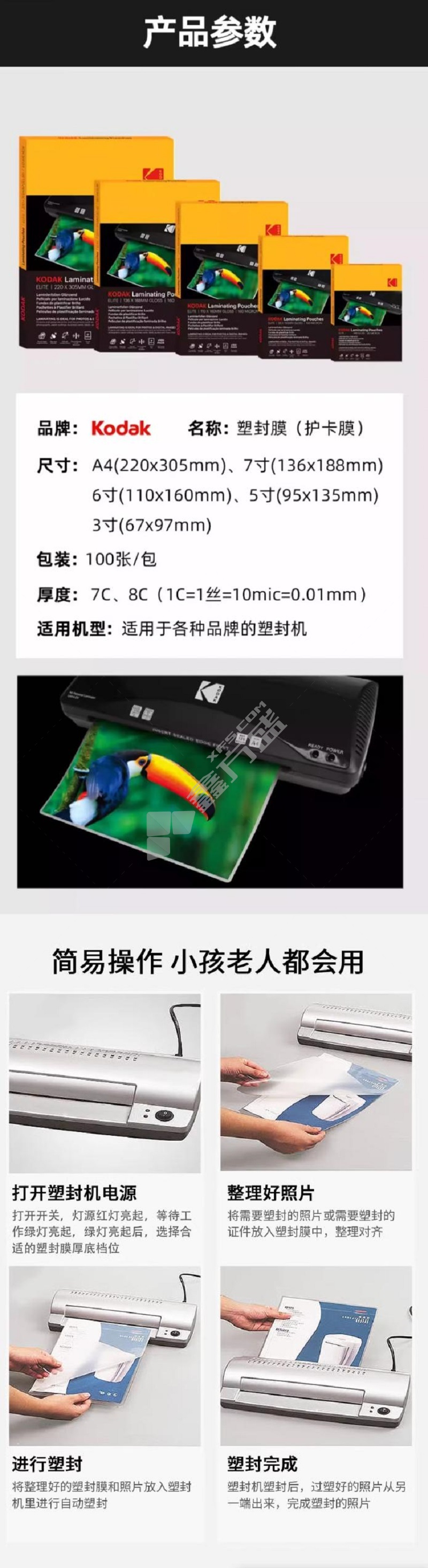商品名称: 柯达 塑封膜 10丝亮面塑封膜