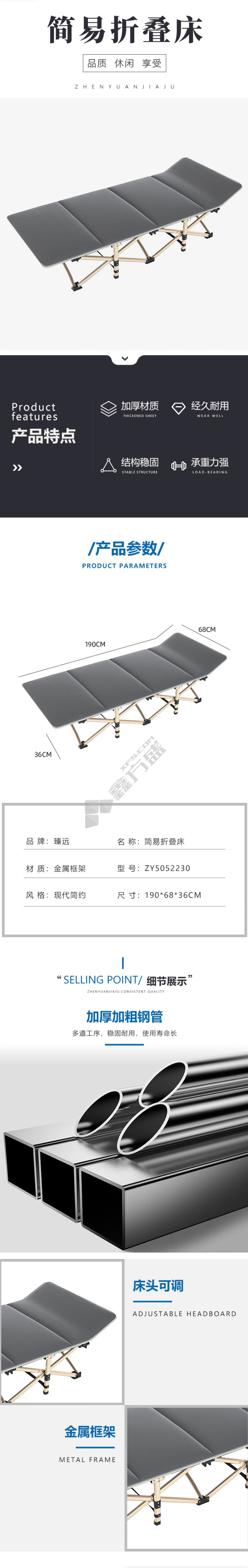 臻远 简易折叠床 ZY5052230 简易折叠床 灰色方管 190*68*36cm(单位:张)深灰色