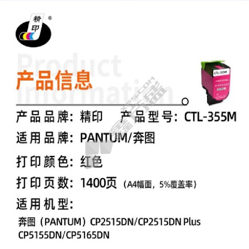 商品名称: 精印 粉盒 CTL355M适用于CP2515DN/ CP5155