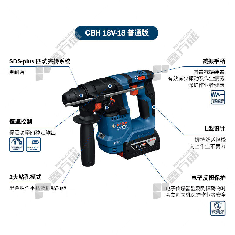 商品名称: 博世 GBH18V-18 充电式电锤 两用 两电一充 18V 4.0Ah*2组