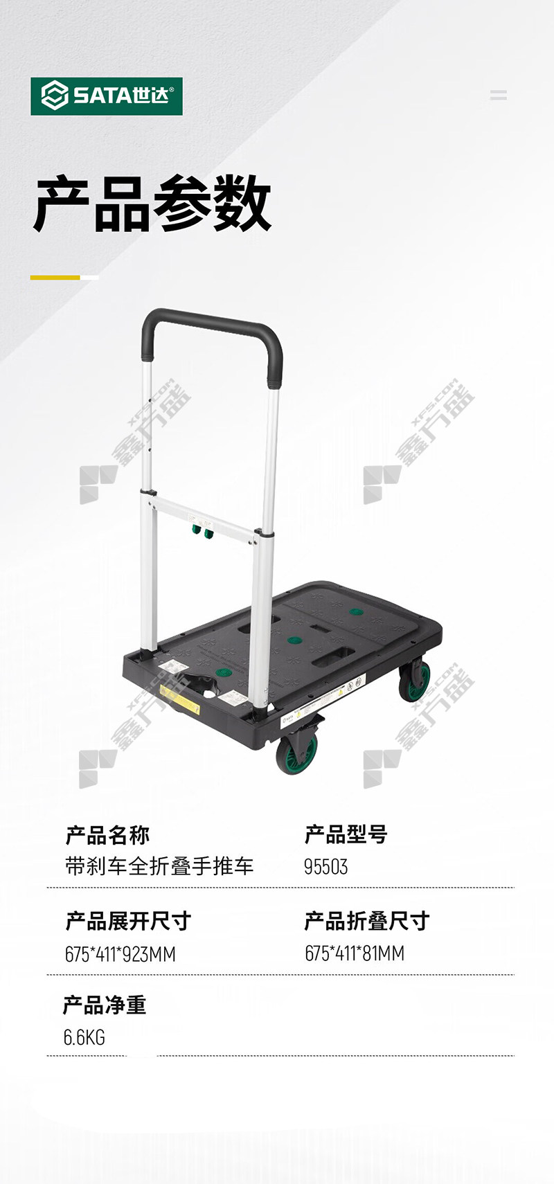 商品名称: 世达 95503 带刹车全折叠手推车 静音脚轮 675*411*923mm 135kg 黑色