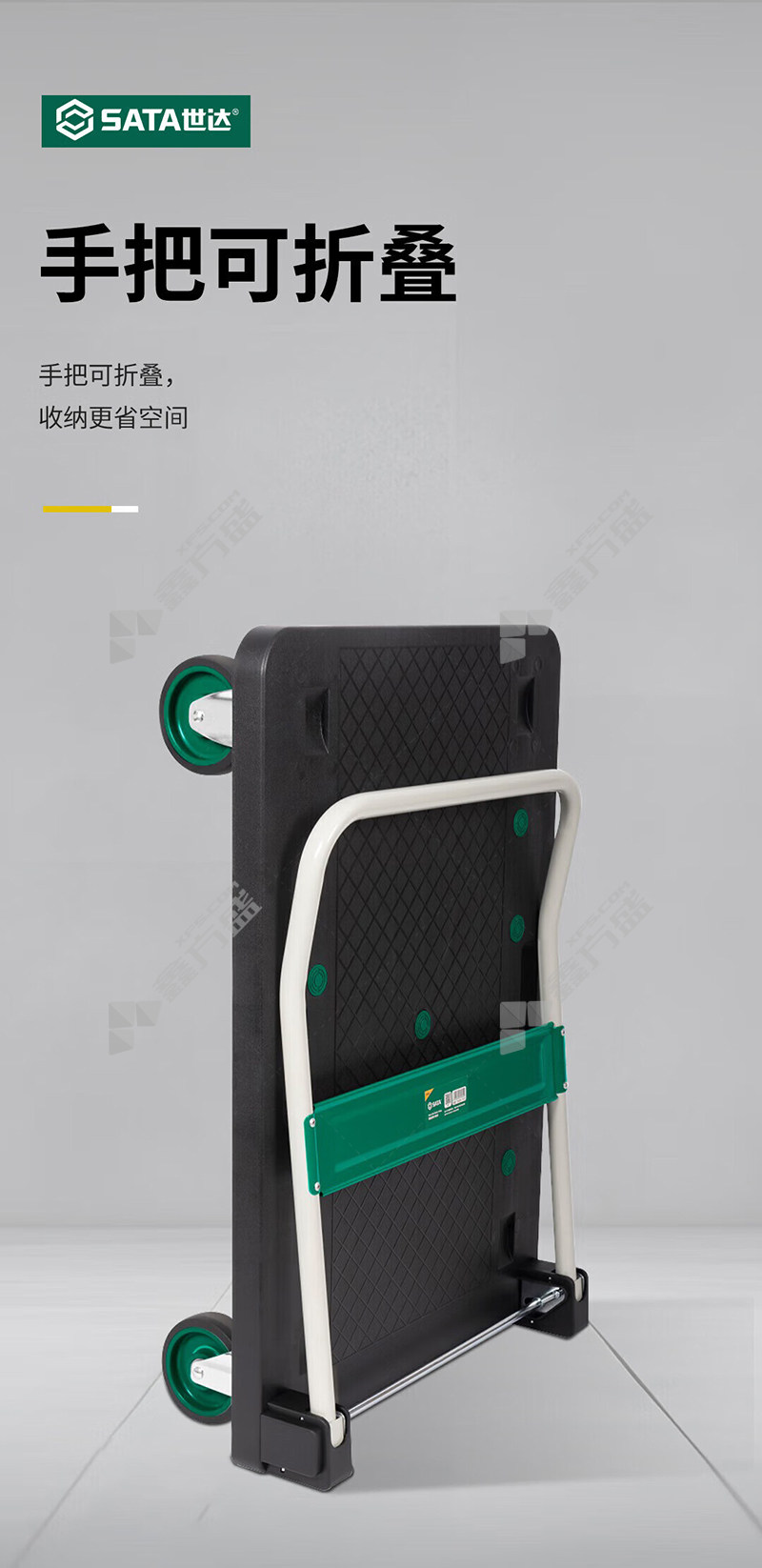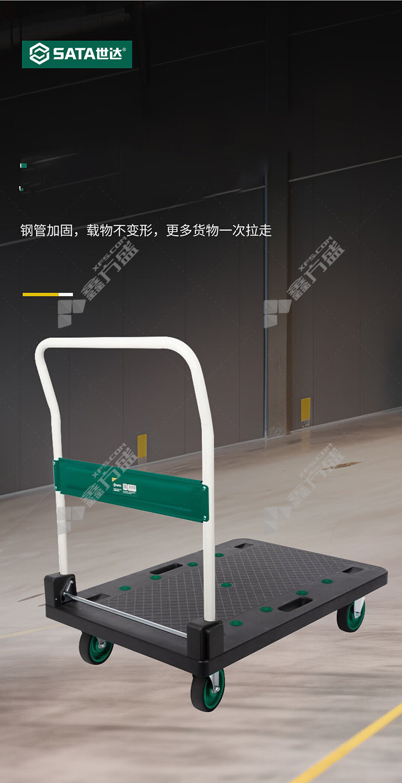 • 世达 95503 带刹车全折叠手推车 静音脚轮 675*411*923mm 135kg 黑色