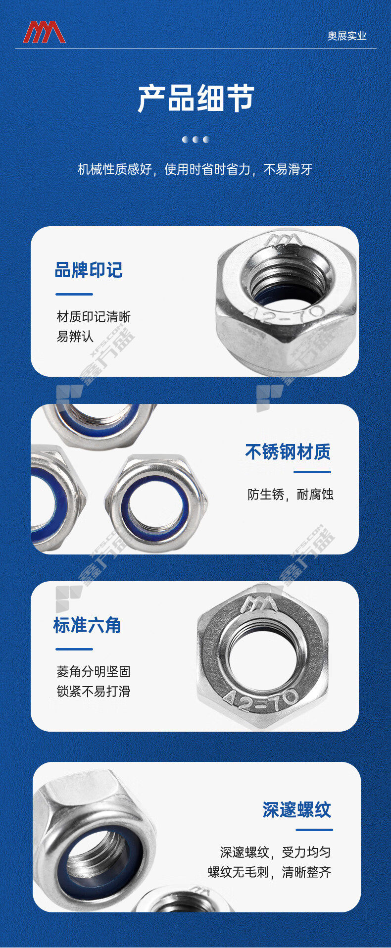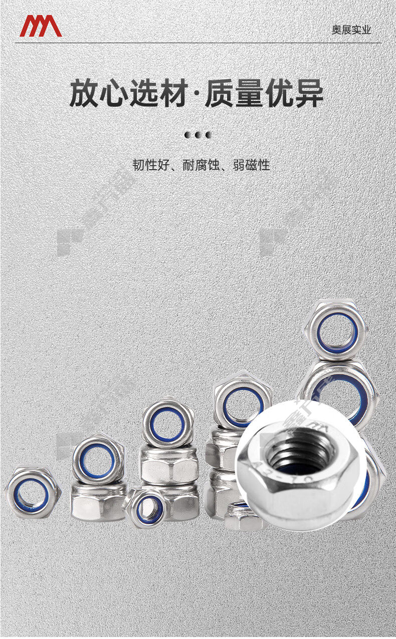 商品名称: 奥展 DIIN985 本色 316L不锈钢 非金属嵌件锁紧螺母(蓝圈) M8