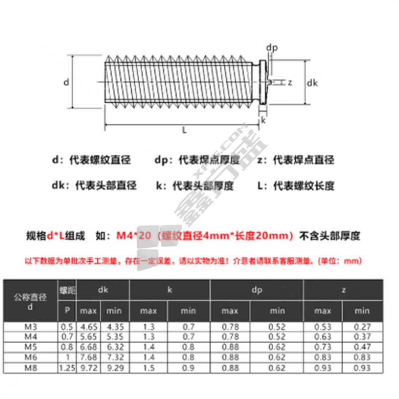 商品名称: 佰瑞特 304不锈钢 焊钉 M4/10mm