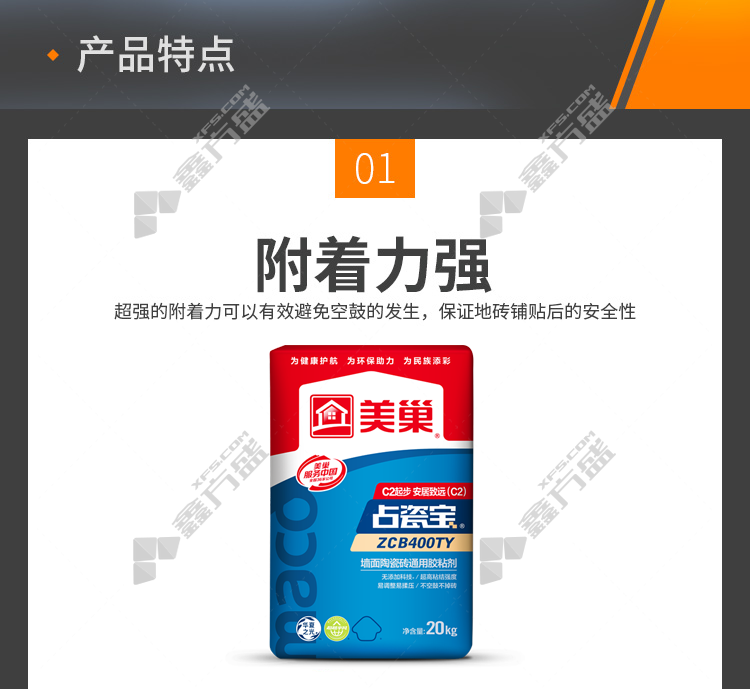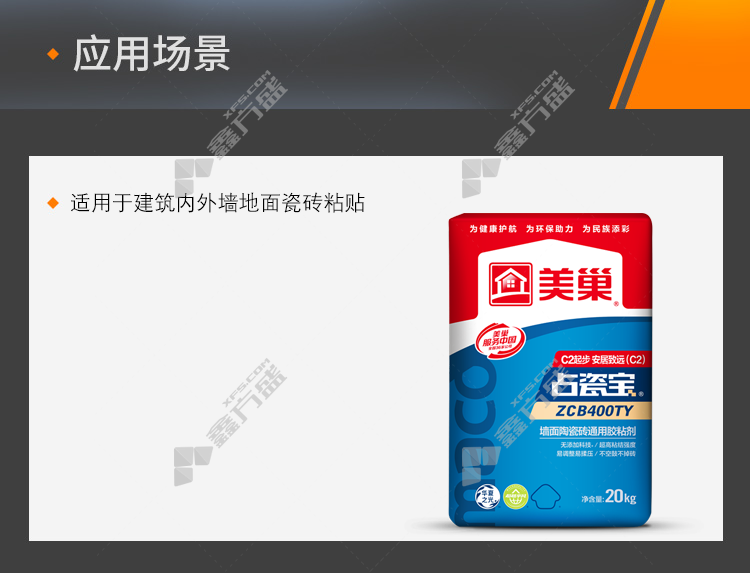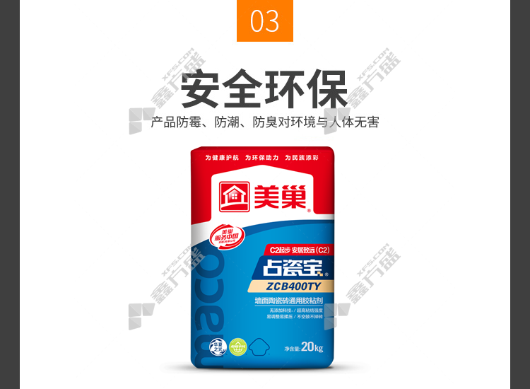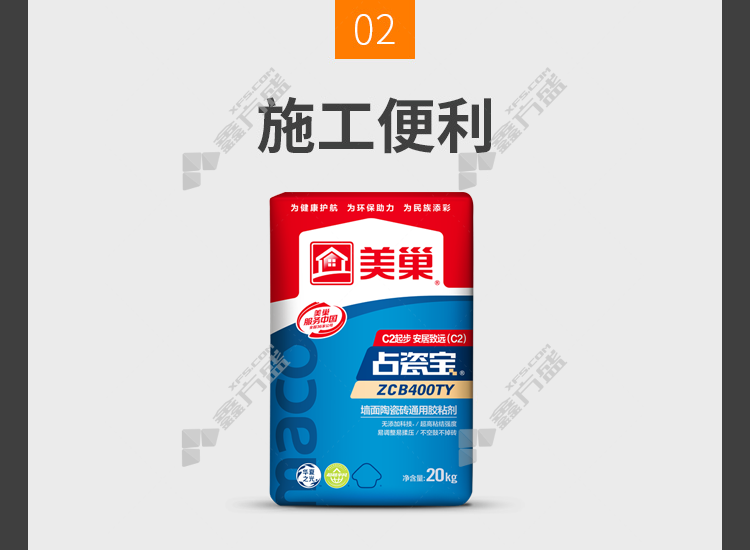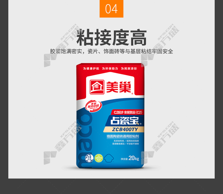商品名称: 美巢 占瓷宝ZCB400TY 陶瓷砖 墙面通用胶粘剂 20kg